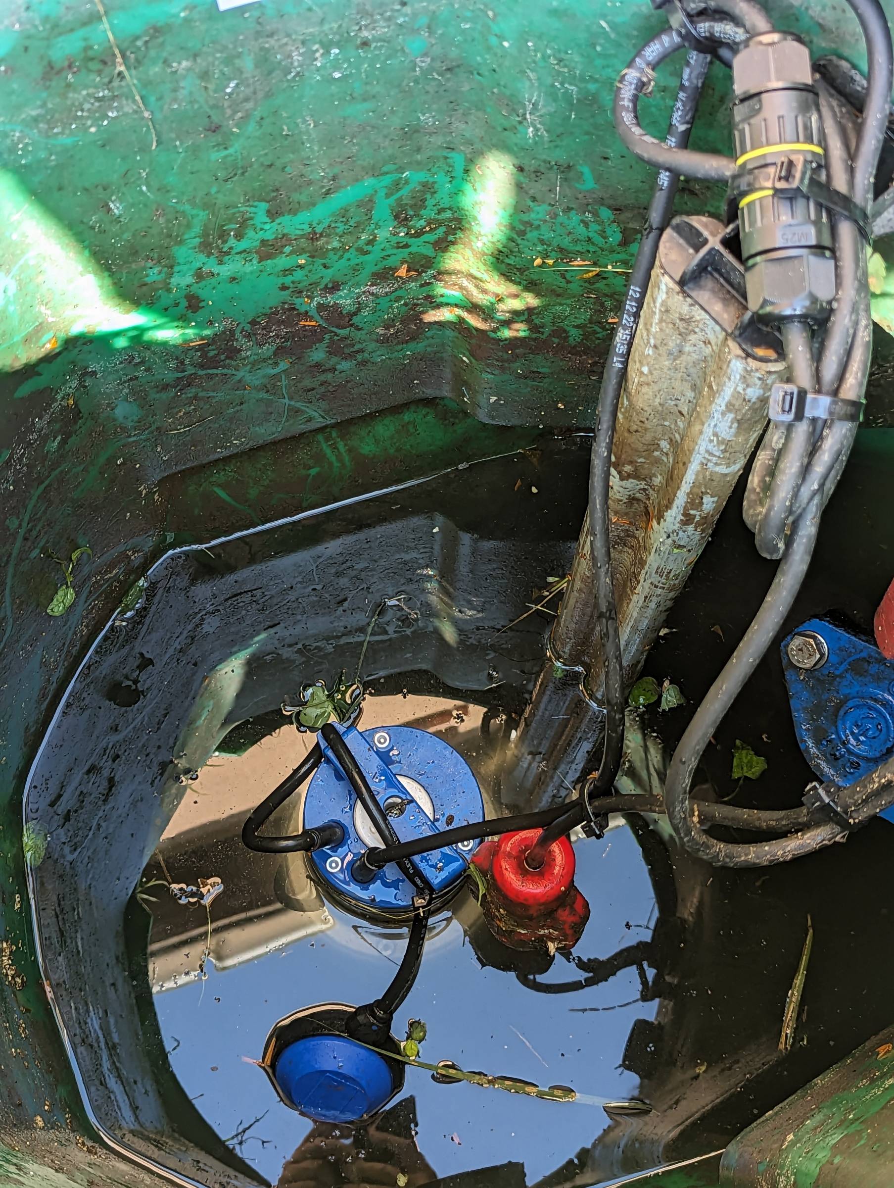 IL S’AVÉRAIT QUE LES CONNEXIONS ÉLECTRIQUES ÉTAIENT NON ÉTANCHES, MAIS AUSSI, QUE LE FLOTTEUR DE LA POMPE DE RELEVAGE ÉTAIT NON RÉGLÉ ET POSÉ AU FOND DE LA CUVE.